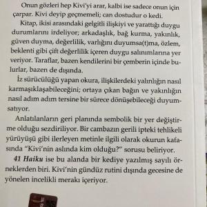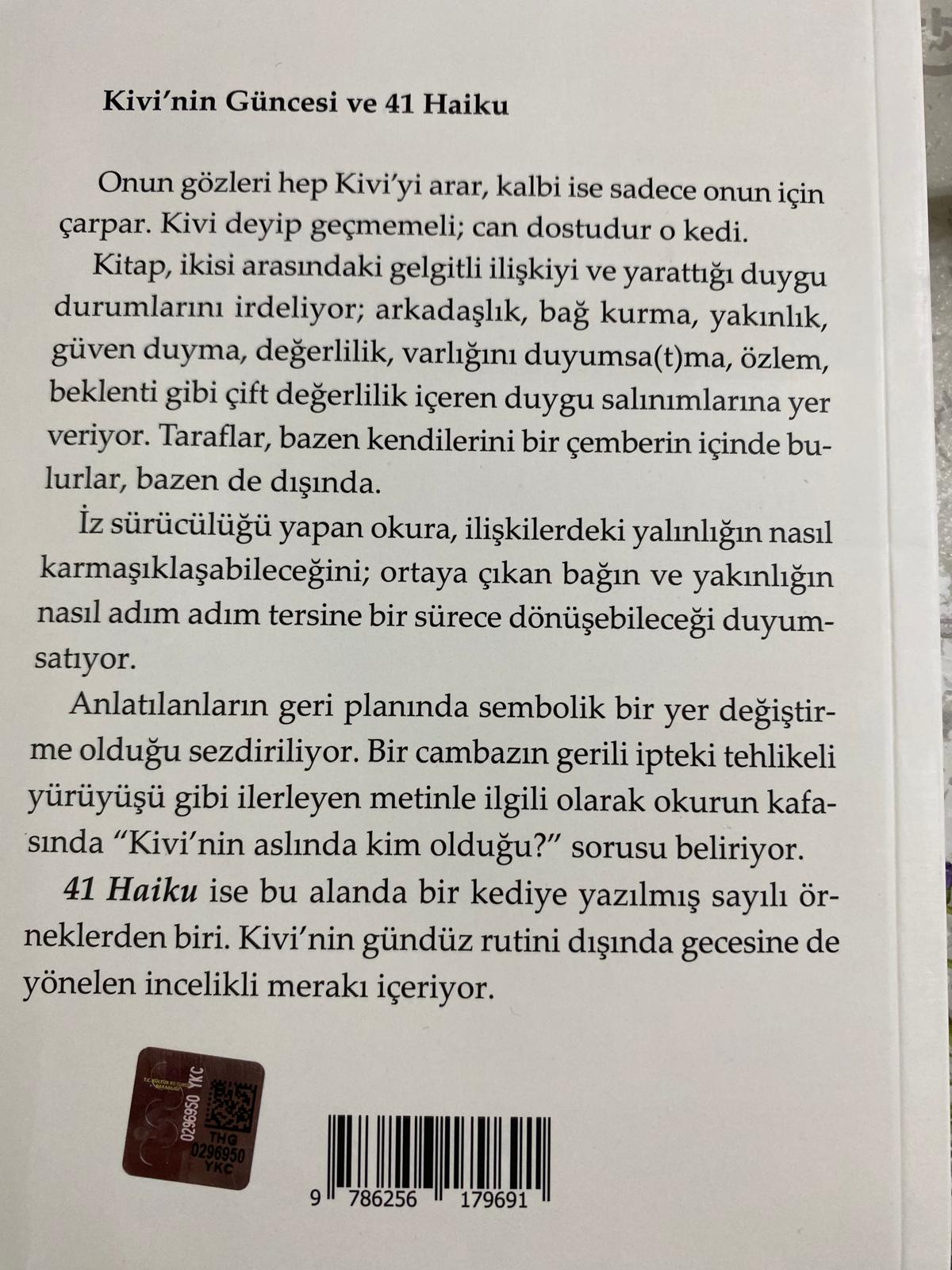 Üç bölümden oluşan kitabın ilk bölümünde Kivi Güncesi yazıları yer alıyor ve burada kaybolan kediler üzerinden keder ve kaybın duygusal yönleri inceleniyor. İkinci bölümü oluşturan "Kivi’ninGüncesi”nde, Kivi ve can dostunun yaşadığı zorlu bir sürecin ilişkiler üzerindeki etkisi titizlikle işleniyor. Kitabın üçüncü bölümü "41 Haiku" ise geleneksel Japon şiiri olan Haiku'nunçağdaş bir yorumu olarak okurlarla buluşuyor.