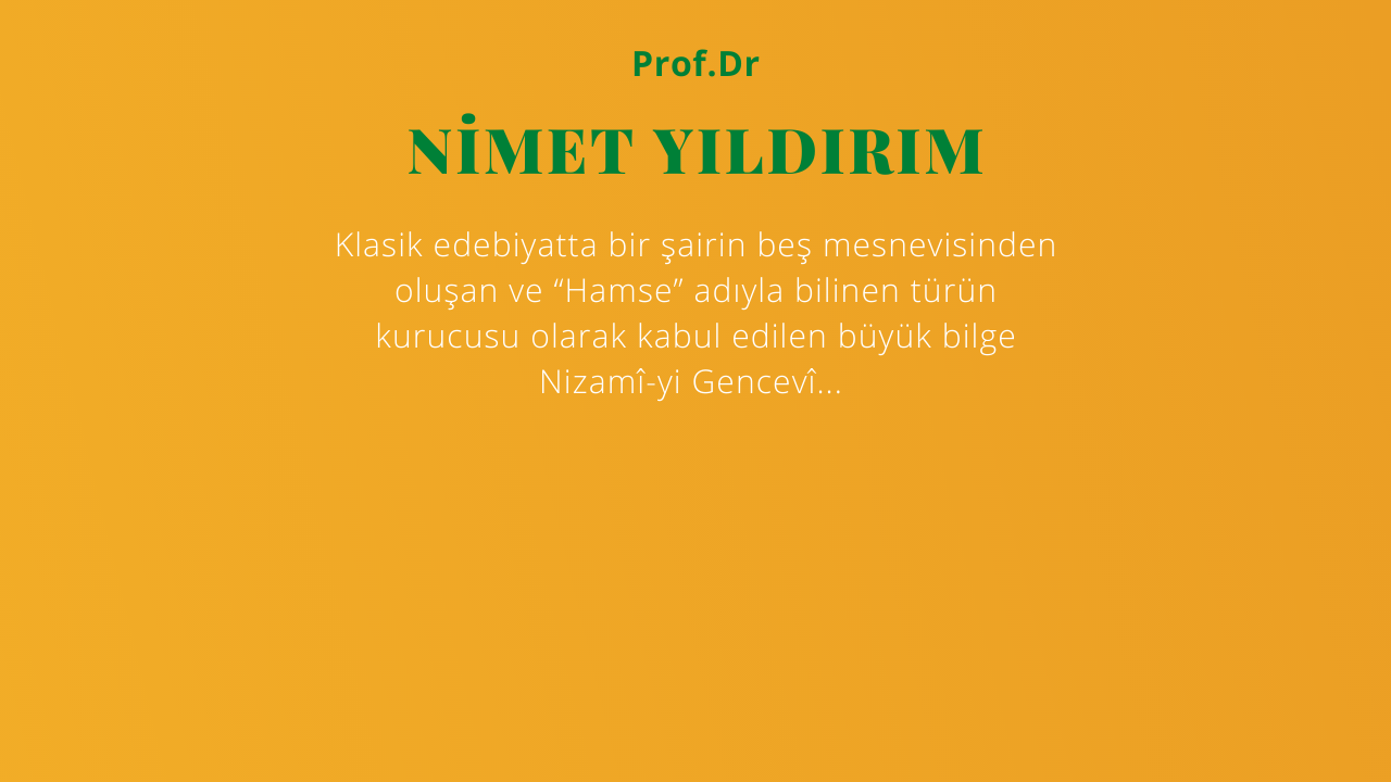 Klasik edebiyatta bir şairin beş mesnevisinden oluşan ve “Ham-se” adıyla bilinen türün kurucusu olarak kabul edilen büyük bil-ge Nizamî-yi Gencevî, 1141-1145 yılları arasında Gence'de doğ-du, iyi bir eğitim gördü, dil ve edebiyat yanında astronomi, felse-fe, coğrafya, tıp ve matematik okudu, musikiye ilgi duydu, Farsça ve Arapça’dan başka Pehlevîce, Süryanice, İbranice, Ermenice ve Gürcüce gibi dilleri de öğrendi.