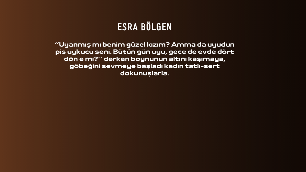 ‘’Uyanmış mı benim güzel kızım? Amma da uyudun pis uykucu seni. Bütün gün uyu, gece de evde dört dön e mi?’’ derken boynunun altını kaşımaya, göbeğini sevmeye başladı kadın tatlı-sert dokunuşlarla.