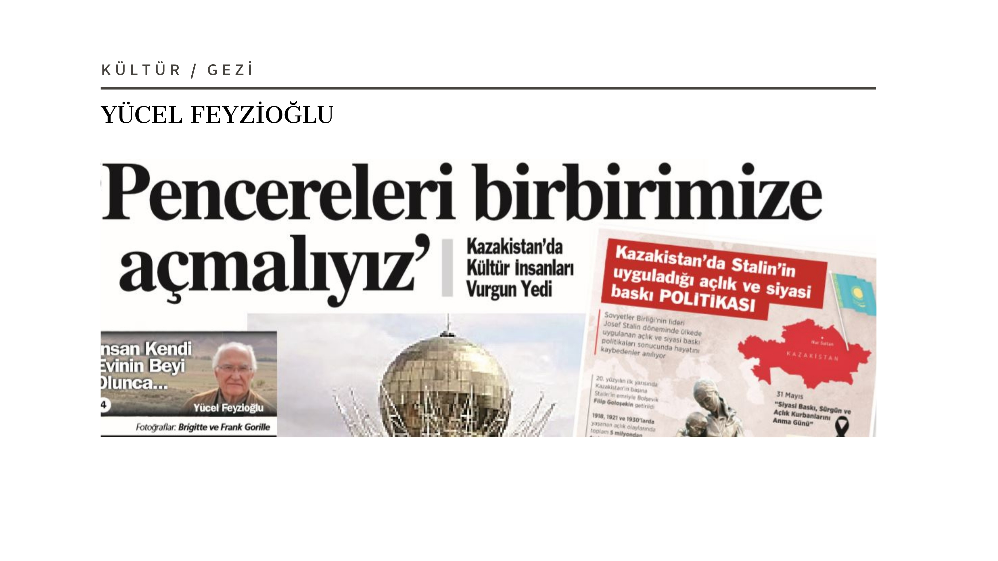 Öte yandan Âşık (akın) geleneği güçlü bir biçimde devam ediyor Kazakistan’da. Her yıl Konya Âşıklar Bayramı gibi orada da “Akın Toyu” yapılıyor. Bütün ülkeden yüzlerce akın arasından seçilip başkente geliyorlar, atışmalar, yarışmalar yapılıyor. Halk buna çok ilgi gösteriyor. Kazakistan müzeleri, tiyatro salonları, operaları, çocuklar için kukla tiyatrosu, resim galerileriyle göz dolduruyor.