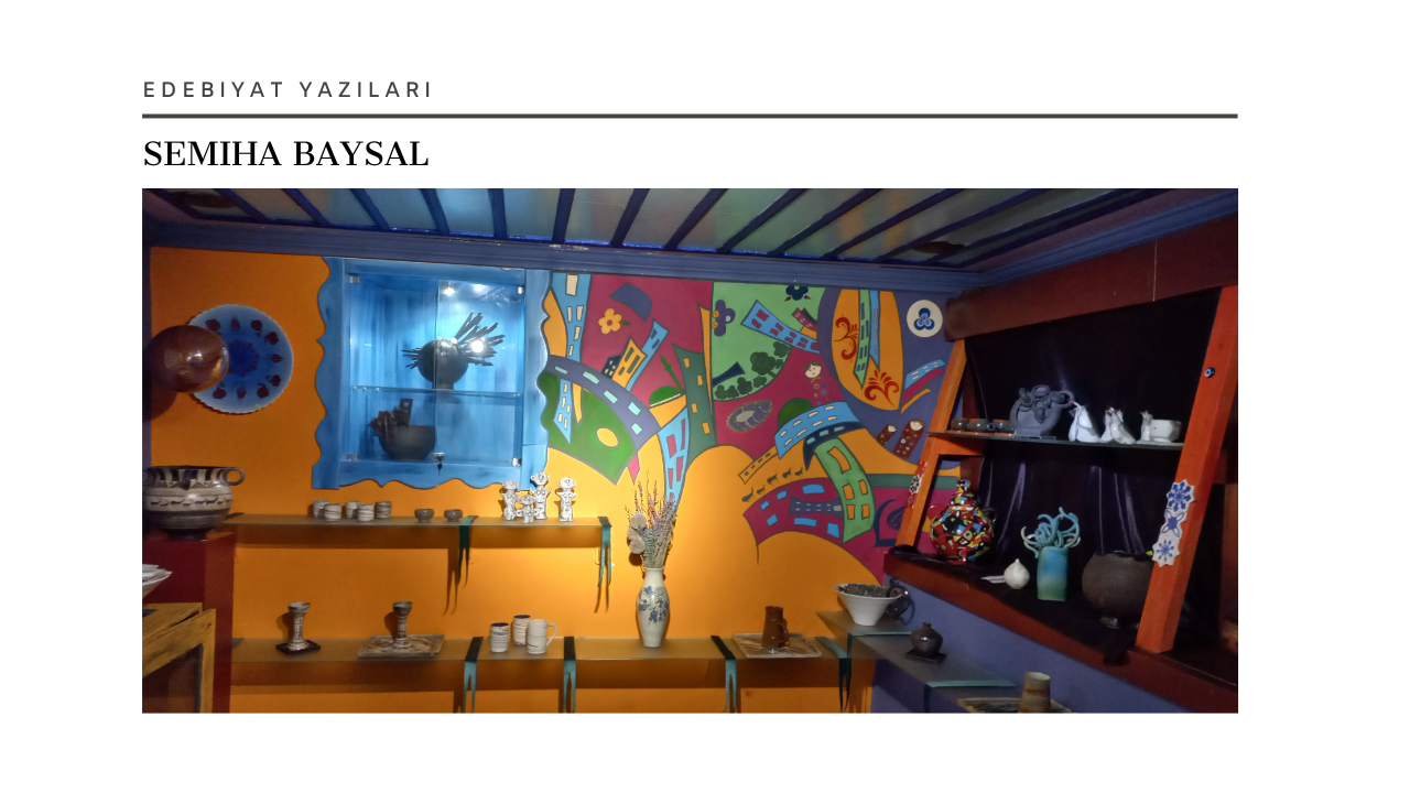 Beş kolektif kitapta öykü ya da şiirlerimle, “Gençlerin Yazın Sevdalısı Öğretmeni Semiha Baysal” isimli kitapta edebiyat üzerine makalelerimle yer aldım, Saçlarımı Okşayan Esinti isimli öykü kitabım ise geçtiğimiz yıl yayımlandı.