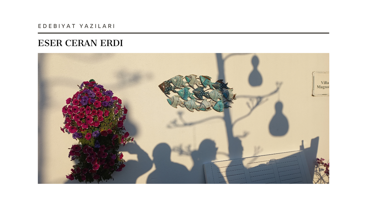 Şiirleri ve düzyazılarının dil, üslup, imge ve konu zenginliği biz okurlarını engin ufuklarda eşsiz yolculuklara çıkardığı için önce Değerli Şair, Yazar ve Çevirmen Eser Ceran Erdi'ye ve nezdinde bizleri bu üretimlerle buluşturan emeklerinize teşekkürü borç biliriz. Saygımla.