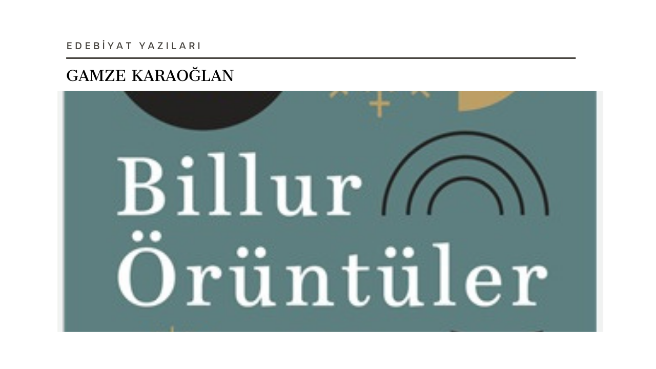 Rıdvan Hatun’un ilk öykü kitabı Billur Örüntüler, sade dili ve ritmik anlatımıyla okuru hızla içine çeken bu içe çekişin sonunda da bazen rahatsız eden, düşündüren, hatta ürküten sahnelerle karşılaştıran bir eser. Can Yayınları tarafından yayınlanan kitapta toplam on üç öykü bulunuyor. Kısa sürede ikinci baskısını yapan eserde yazarın ustalıkla inşa ettiği öykülerdeki atmosferler, okuru bir sonuca değil, sürece; ani dehşetten çok, yavaşça biriken tedirginliğe götürüyor.