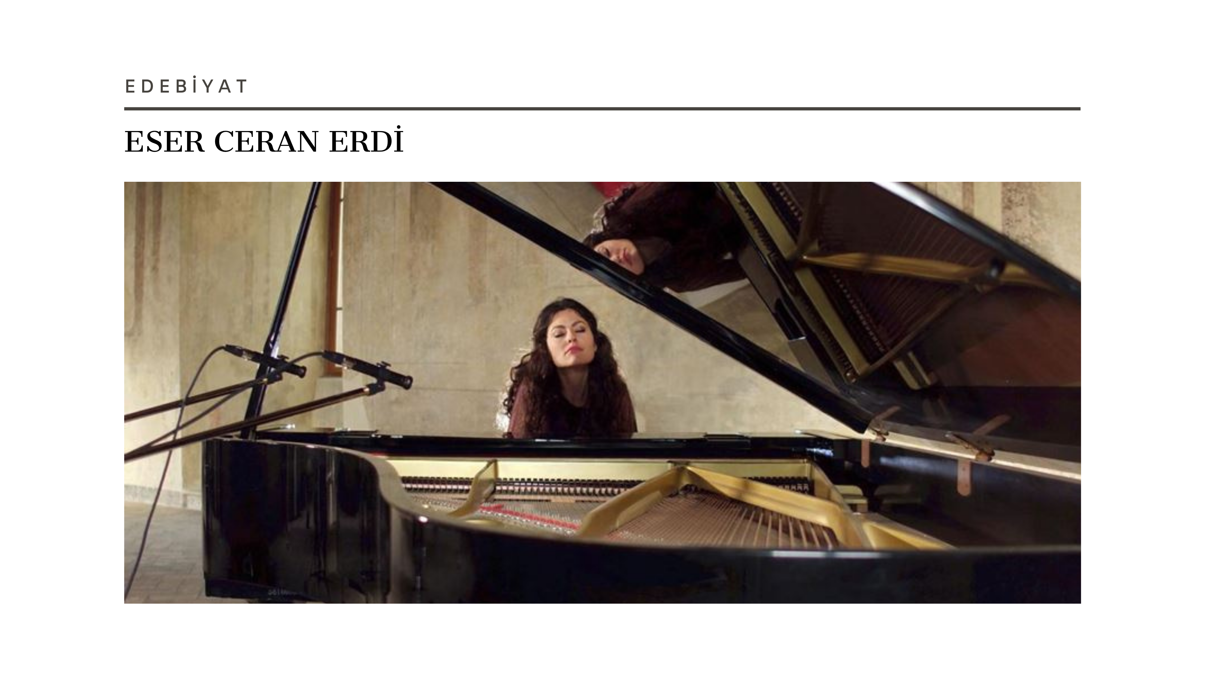 Günümüzde şiirle iç içe geçmiş kendi piyano bestelerine odaklanmaktadır. Üç piyano single’ıyayımlanmış ve PIANOPOETR. Resonances adlı ilk piyano ve şiir albümü 2023’te dinleyiciyle buluşmuştur.