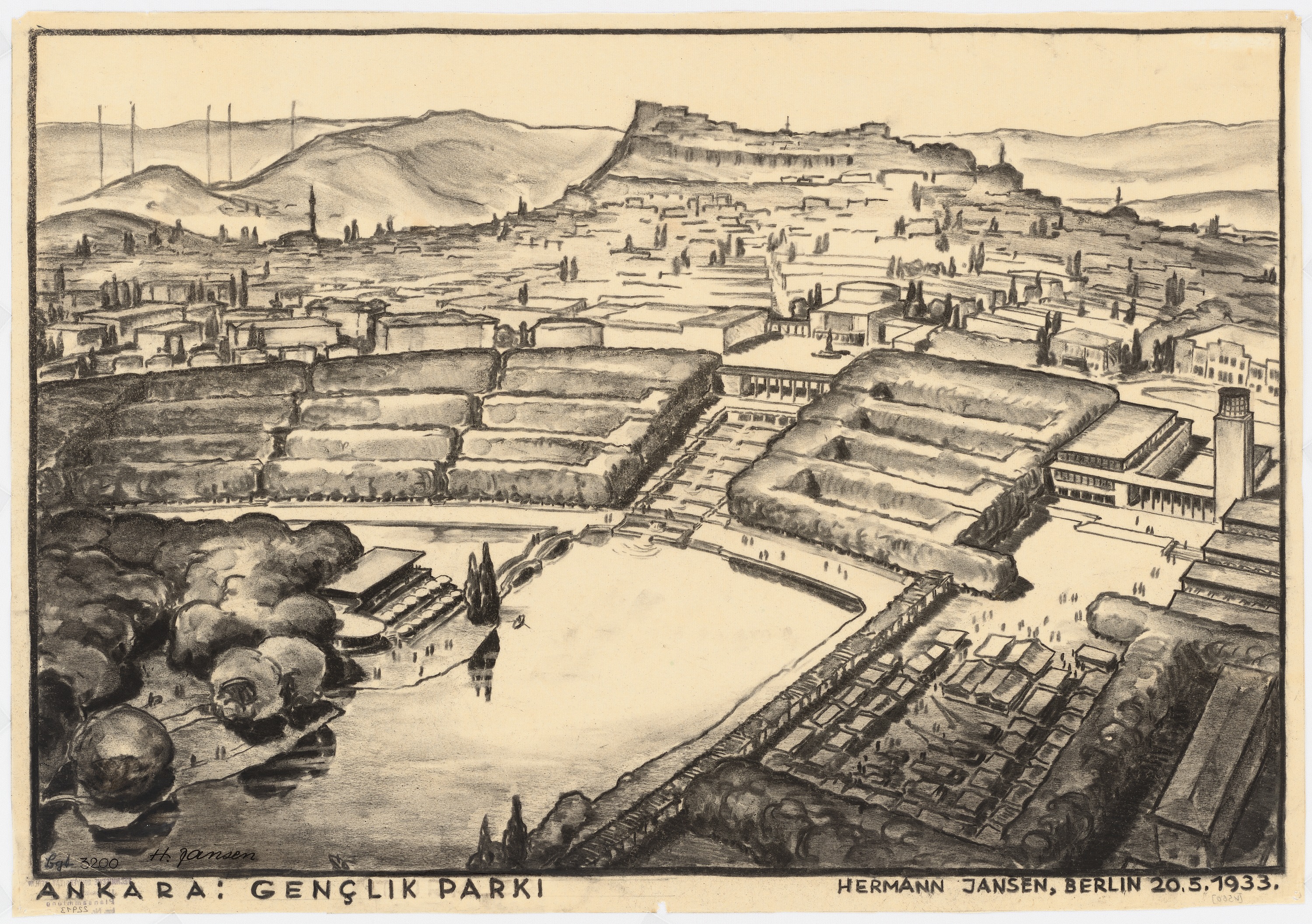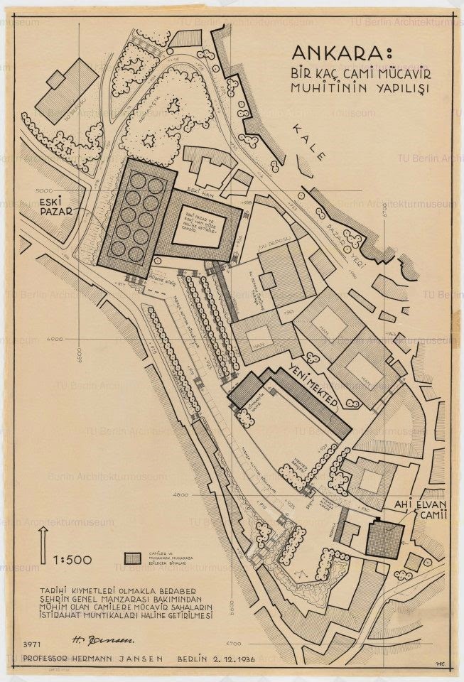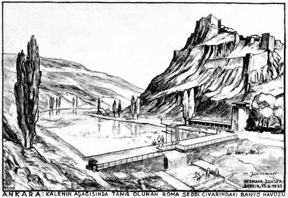 Bu noktada Ankara kimliğinin üçüncü ögesine de dikkat çekmek gerekiyor: Modernist bir ütopyanın kentin tarihi sürecine eklemlenme biçimi…Bu noktada, Ankara, Avrupada ki modernist ütopyadan farklı bir duyarlılık göstermiştir. Gene Jansen Planlarına bakılırsa ve kentin Cumhuriyet dönemi göz önüne getirilirse, Ankara nın tarihi Bölgesi en başından beri büyük çapta korunmuştur. Yeni kent, eski kenti yıkarak değil, onun dışında gerçekleştirilmiştir. Bugün Ankara Kalesi ve çevresindeki yerleşkeler yeniden canlanıyorsa, bunda söz ettiğimiz bilinçliliğin değerini görmek gerekir. Yazımıza koyduğumuz çizimler bu bilinçliliği açıkça göstermektedir. Özellikle Kale önü ve gerçekleşen Müzeler bölgesinin o zamana göre detaylı tespiti ve çevre düzenlenmesi ancak 2000.li yıllardan sonra yeniden doğan tarih bilinci ile uygulanmaya konulmaktadır.