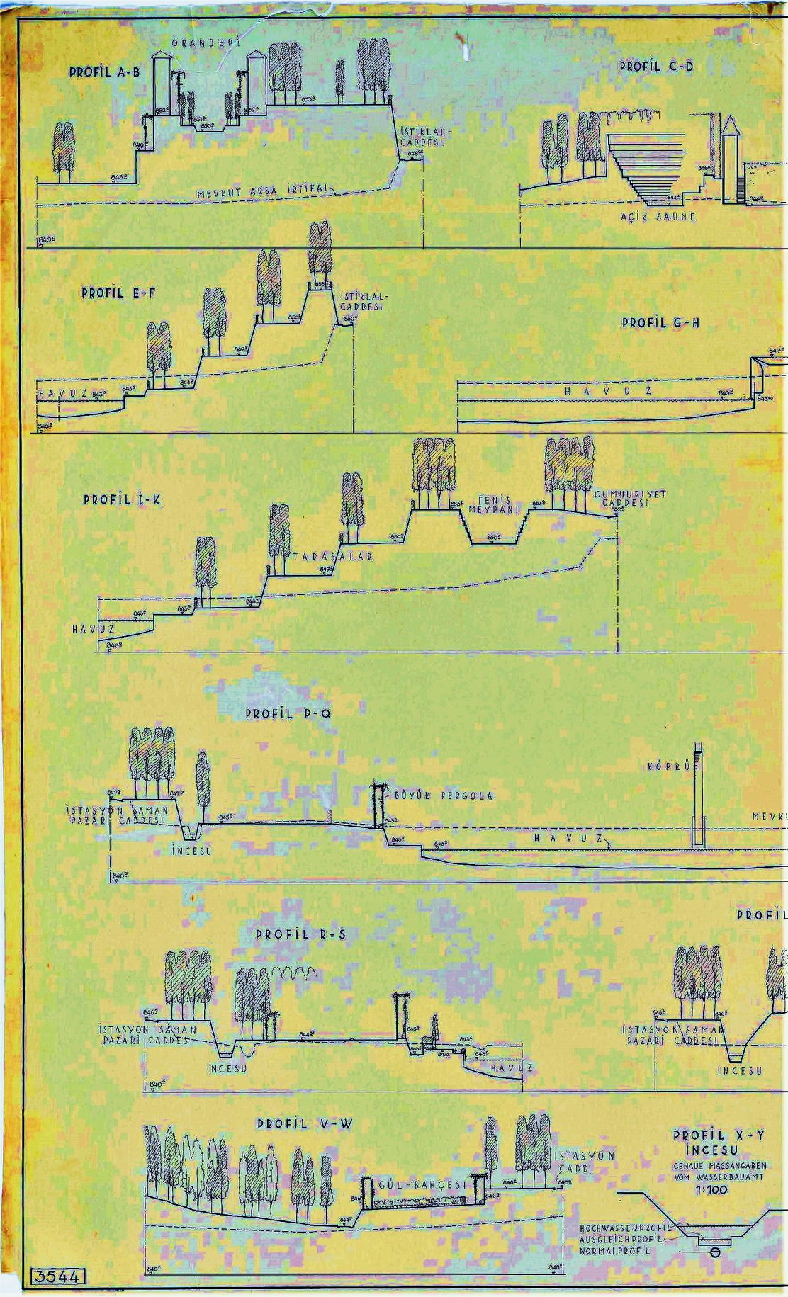 Ankara’ya biraz tepelik bir yerden bakın, kentin ne kadar yeşil olduğunu görürsünüz. Kentteki “ akarsu” eksikliği, ilk hazırlanan Jansen planından gelmemektedir. Tam tersine, Jansen planı’nda, kent yerleşkesinde detaylı bir kanalizasyon yağmursuyu ve açıktan akan derelerin kente yaşam katması planlandığı görülecektir. Jansen in özellikle İNCESU Deresi üstüne yaptığı analizler olağanüstüdür. Derenin çevresi ile değişik düzeylerde kurduğu ilişkiler ve derenin kent yaşamında taşıması beklenen düşüncelerin çeşitliliği çoğulcu ilişki biçimleri bugün için bile derslerle doludur. Jansen in ikinci önem verdiği akarsu BENT DERESİdir. Bugün kayıp olmuş Bent Deresi üstünde,Jansen su bentleri, yüzme alanları önermiştir. VE bu öneri yapılmış, kullanılmıştır. Daha sonraları “ kurnaz” yönetimler dereyi örtüp yol geçirmişlerdir. Süreç içinde, kentin bütün dereleri önce açık kanalizasyon olarak kalmış, sonra üstleri örtülmüştür. Bugün “Ankara nın altında dereler akmaktadır”. Gençlik Parkı, Çubuk Barajı gibi kitlesel yeşil / rekreasyon alanları çok uzun yıllar kentin yaşam merkezleri olmuştur.