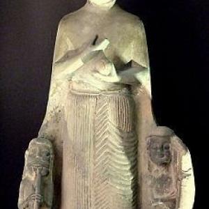 Ayaş’ta bulunan heykelinde sol elinde bir kuş ve sağ elinde içki kabıyla gösterilmiştir.