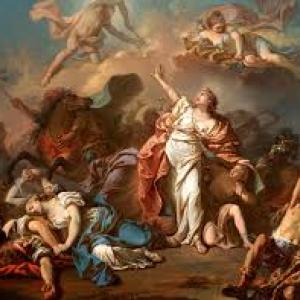 Oğlan kardeşlerinin önünde kara giysiler içinde ve saçları çözük, kızkardeşler duruyordu. İçlerinden biri saplanmış olan oku tam yaradan çıkarırken, öne doğru yıkıldı ve ölü olarak oku çıkarmak istediği cesedin üstüne düştü. Kız kardeşlerden ikincisi acısını biraz hafifletmek için annesini avutmaya çalışırken birden görünmez bir yarayla iki büklüm olarak sustu. Öbürleri dönüp kaçmak isterlerken öldüler. Bir tanesi de korkudan sesi çıkmaz ve hareketsiz kalmış halde öldürüldü. Şimdi altı kız ölmüştü yalnızca en küçükleri kalmıştı. Annesi ona sığınan ve giysinin kıvrımlarına saklanmak isteyen çocuğunu kollarıyla sararak, “Ah, bana bir tanesini bırak bari yalvarırım” diye bağırdı, “en küçüğümü bir çok idiler, şimdi sadece ama sadece bir bunu istiyorum feryadımı duy nolur en küçüklerini bırak bana.”