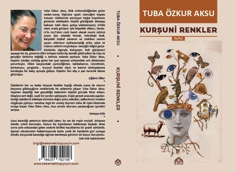 Tuba Özkur Aksu’nun ilk öykü kitabı ‘Kurşuni Renkler’ –Kekeme Yayınları Şubat 2021-Otuz öyküyle okuyucusuna bir öykü şöleni yaşatıyor. Yazarın daha önce de ‘Anne Kokan Ekmekler’ adlı romanı 2015’de yayınlanmıştır.
