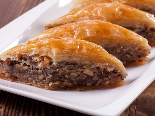 Tatlı da sevilir ve illa ki kapanışta bir şeyler yenir. Tatlılar da bizdekilere benzer. Helva, kadayıf, baklava, lokma veya minik kaplarda sunulan meyve reçelleri ile karşılaşabilirsiniz. Yazın adalarda ikram olarak saplı minik dondurmalar servis edilir.