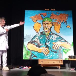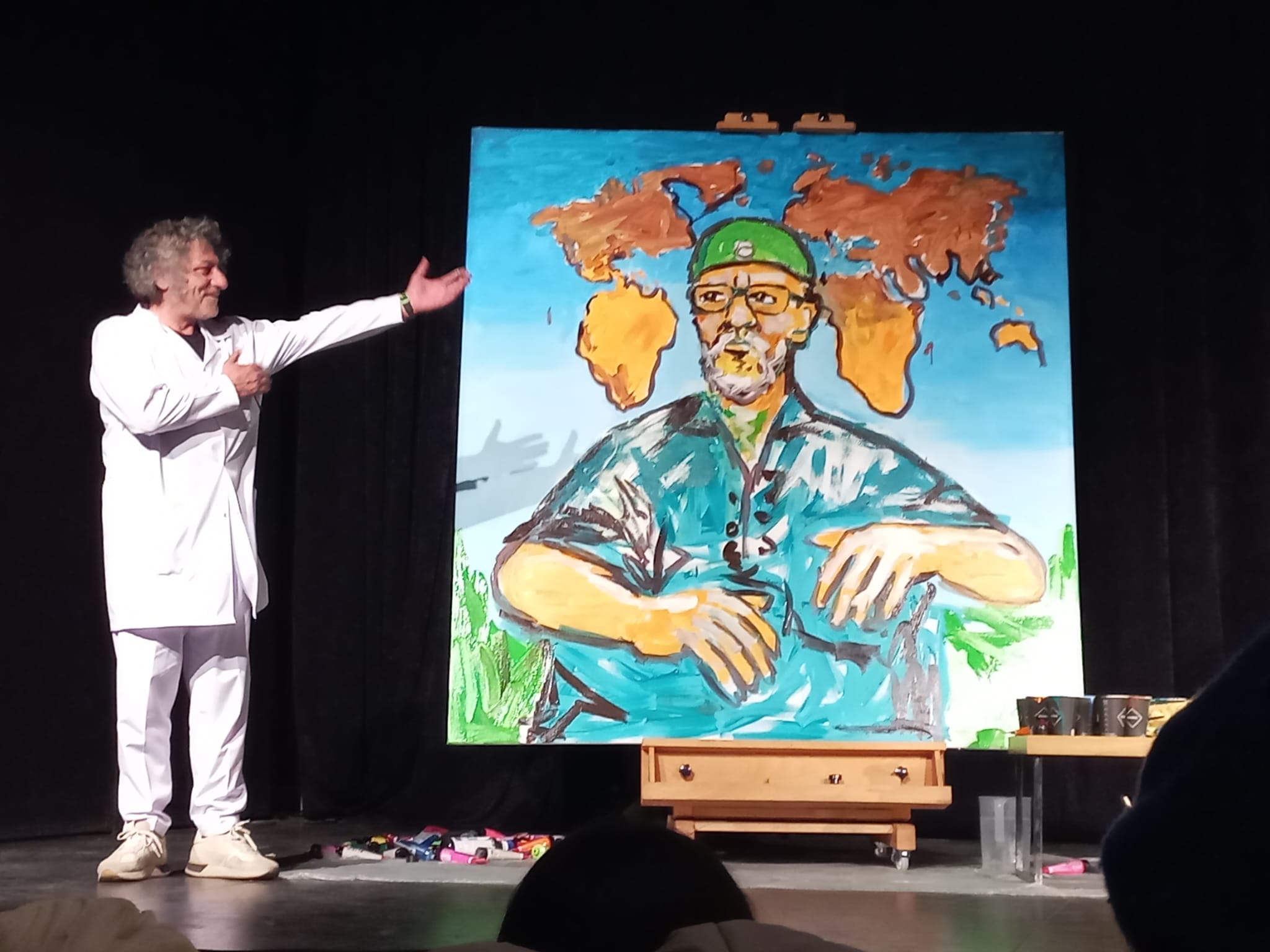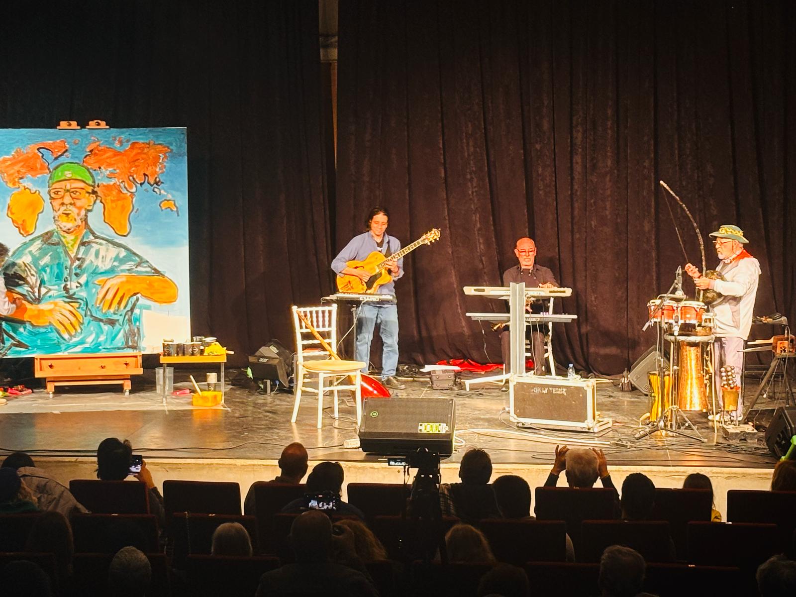 Bu resim sergisi bağlamında 12 Nisan 2025 Cumartesi günü ikinci bir sanat serüvenine müzik alanında tanık olduk ki her iki alanın nasıl iç içe bağlarla işlediğinin, sanat denen özgürlük ve özgünlük özelliklerinin nasıl birbirini tamamladığının da tanıklığıyla. Nitekim konser sırasında sahnede resim yapan Musto bir ara orkestrada sazıyla yer alarak birtürkümüzü orkestraile birlikte seslendirdiler. Bu alanda da nasıl başarılı olduğu görüldü. Zaten yaşamöyküsünde 20’ye yakın değişik enstrümanı profesyonel anlamda kullanabildiği yazıyordu.