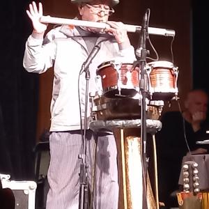Afrika yerlilerinin otantik ses veren aygıtlarından, biçimini, formunu ilk kez bu orkestrada gördüğümüz saplı sapsız, ipli-ipsiz, üflemeli, vurmalı, tepmeli, değişik enstrümanların sapından, gövdesinden, kenarından, kıyısından sesler çıkardığı seslerle oynamak. Bir borudan kesip biçip; bir sarımsak ezeceğinden, bir keçi-koyun çıngırakları dizisinden yarattığı oyuncaklarıyla sesler çıkarıyor, klasik enstrümanların çıkarmadığı bu özgün seslerle özgürce, keyfince, çocukça, coşkuyla oynuyor. Kuşkusuz izleyicilerin, dinleyicilerinin, müzik tutkunlarının aldığı hazdan, paylaşımdan büyük hazlar yaşayarak. Bu nedenle de hem yaratıcılıkta hem yaşamda, giyim-kuşamda yaşlanmıyor, dinamizm içinde.