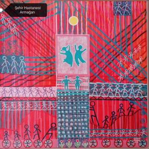 Alttaki insanların el ele tutuşması, birlik ve beraberliğin önemini vurguluyor. Ortadaki stilize edilmiş sembol, geleneksel bir motif, kültürel bir derinlik katıyor. Genel olarak resim doğada barışa ve toplumsal birlikteliğe dair pozitif bir mesaj veriyor. Renk paletinin canlılığı ve arka plandaki doku ise resme canlılık kazandırıyor.
