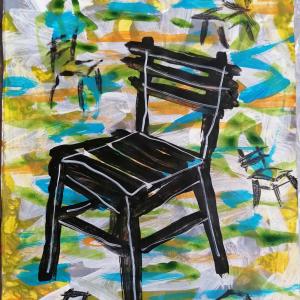 Sandalye resmi de oldukça etkileyici bir tarzda yapılmış. Konu olarak basit bir sandalye seçilmesine rağmen, sanatçının renk kullanımı ve fırça darbeleriyle güçlü bir ifade yaratılmış. Arka planda pembe mavi ve sarı tonlardaki fırça darbeleri resme canlı bir arka plan ve dinamizm katmış. Sandalyenin yeşil oturma kısmı ve kahverengi ahşap bölümleri renk kontrastları sayesinde belirlenmiş. Resimde kullanılan koyu konturlar sandalyeye sağlamlık hissi verirken, renklerin üst üste bindiği bölgelerde soyut bir hava yaratılmış. Bu yaklaşım hem objeyi belirgin kılıyor, hem de bir hareket duygusu veriyor. 1986 tarihli bu çalışma dönemin yansıması gibi. Yaşamın bir parçası gibi.